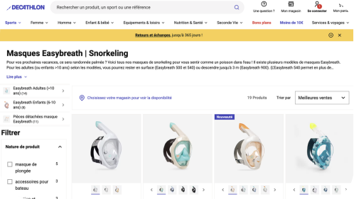 Easybreath浮潜面罩的核心创新在于,它让初学者也能像在陆地一样自然呼吸,轻松地拥抱水下世界。这是一个为“体验”而生的产品。迪卡侬没有将它简单地放在官网庞大的产品目录中,而是为它创建了一个专属的数字空间。后缀在这里起到了画龙点睛的作用。