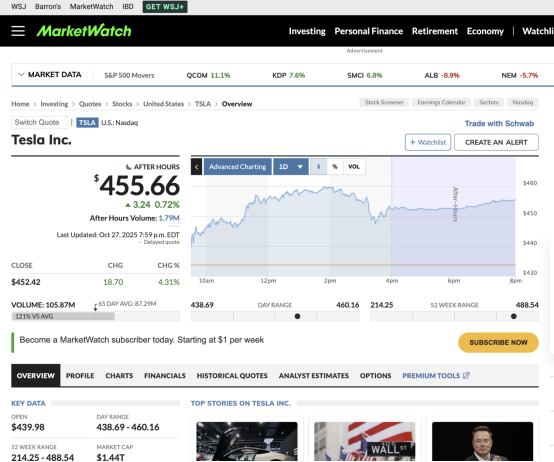 .today的能量还体现在它能为高度垂直、瞬息万变的主题提供一个极具品牌感的入口。对于特斯拉(Tesla)这样一家时刻处于新闻焦点的公司,其股价和动态是投资者每日关注的核心。