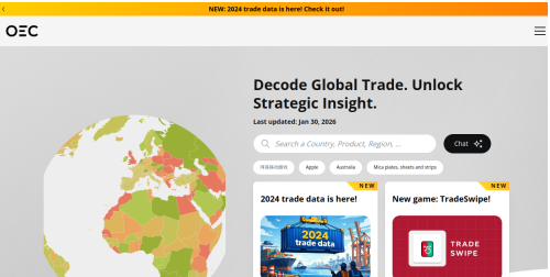 如果说 data.world 代表了商业生态,那么 OEC.world 则展示了该后缀在专业研究与权威机构中的应用价值。OEC 是一个专注于全球贸易流向和经济复杂性分析的可视化平台。